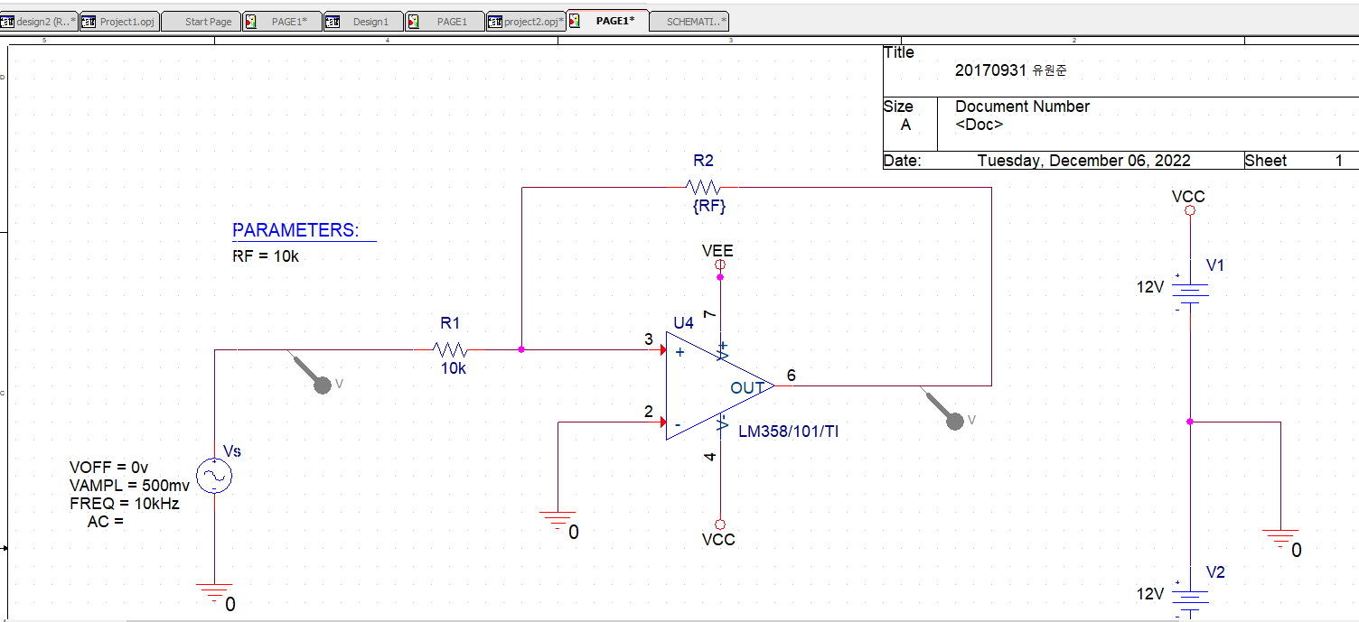 - OP Amp 반전 증폭기(Inverting amplifier) 회로 구성