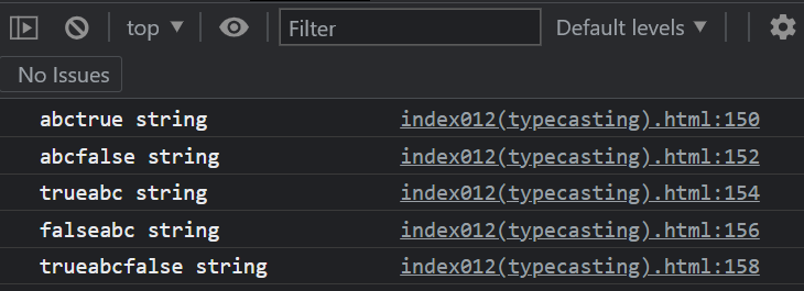 console.log(true + 'abc' + false, typeof (true + 'abc' + false)) // "trueabcfalse" "string"