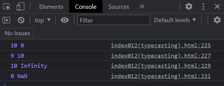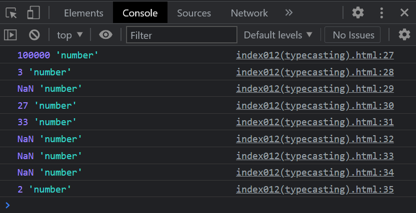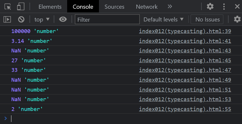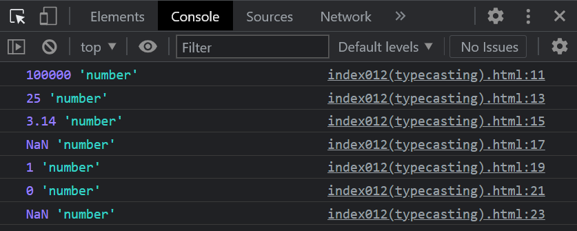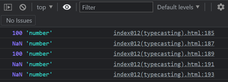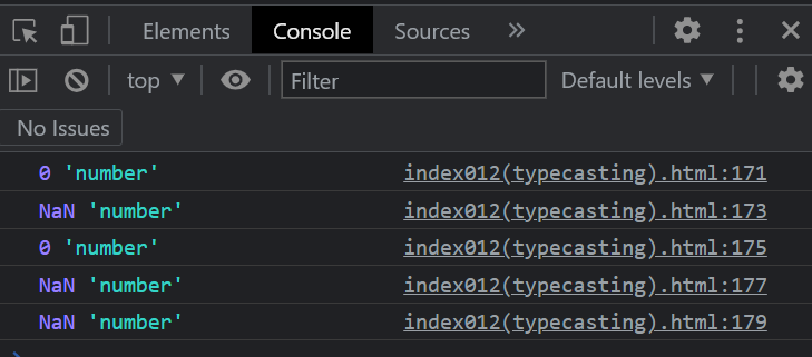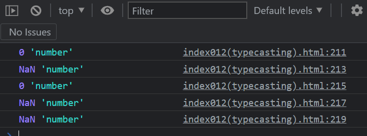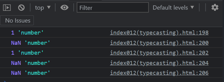 - 숫자 데이터가 아닌 형 변환은 NaN을 반환합니다.