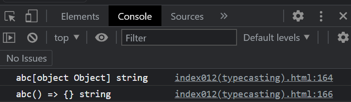 console.log('abc' + { student : 'wonjun' }, typeof ('abc' + { student : 'wonjun' })) // "abc[object Object]" "string"