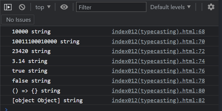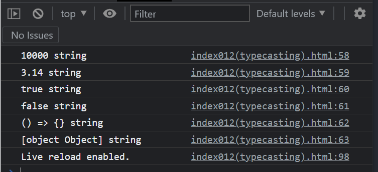 - Number, Boolean 데이터와 Arrow function같은 함수도 문자열로 변경되는 것을 알 수 있습니다.