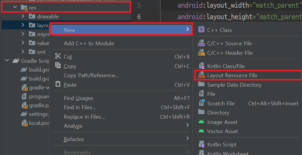 - 프로젝트 경로에서 app/res 디렉토리를 찾고, 마우스 오른쪽 버튼 클릭합니다.