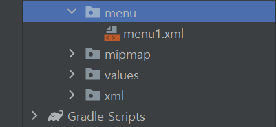 - 이후 menu 디렉토리를 기준으로 menu1.xml 파일을 생성합니다.