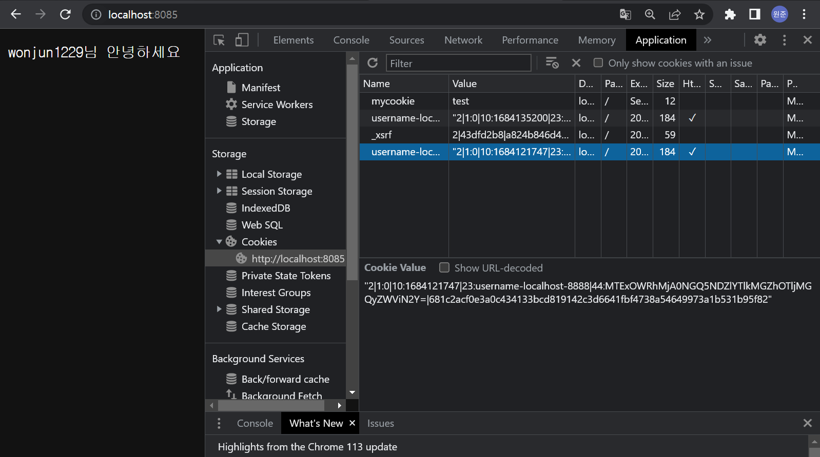- 쿠키의 데이터가 문자열로 담겨져 있습니다.