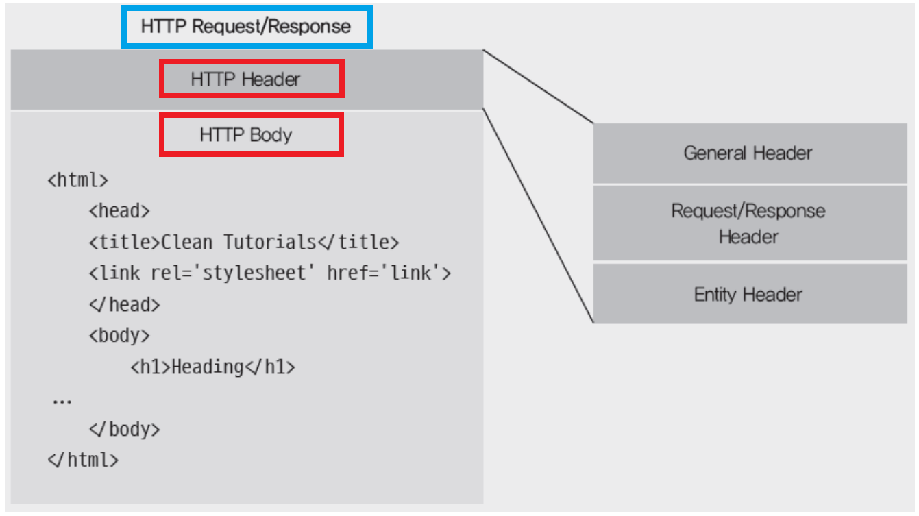 (1) HTTP 요청과 응답의 경우 Header와 Body로 구분할 수 있습니다.