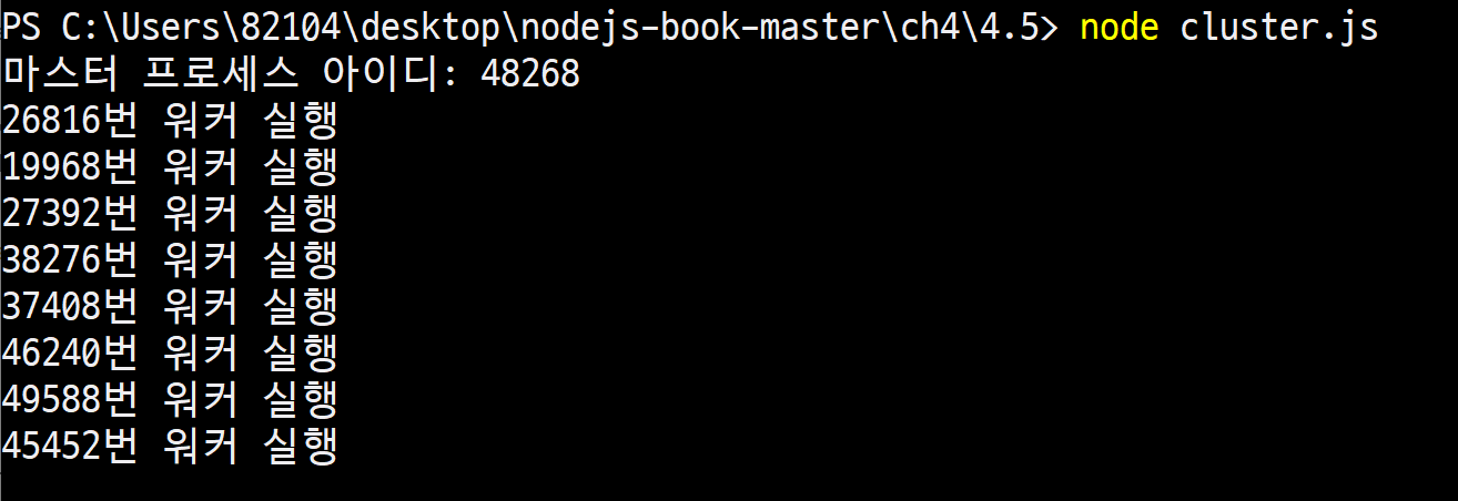 console.log(`${process.pid}번 워커 실행`);