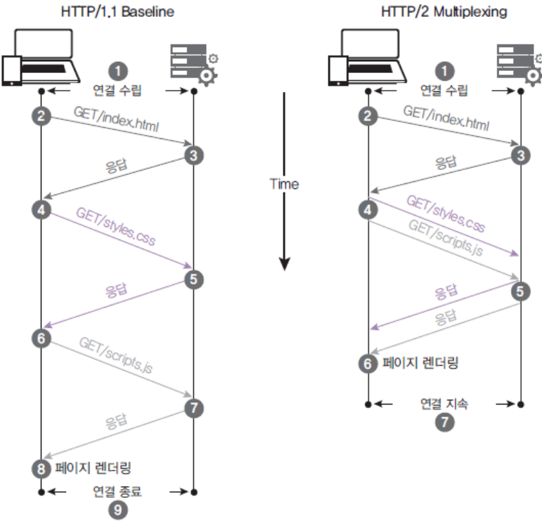 (2) 요청 및 응답 방식, 웹의 속도적인 측면이 기존 HTTP/1.1보다 개선되었습니다.