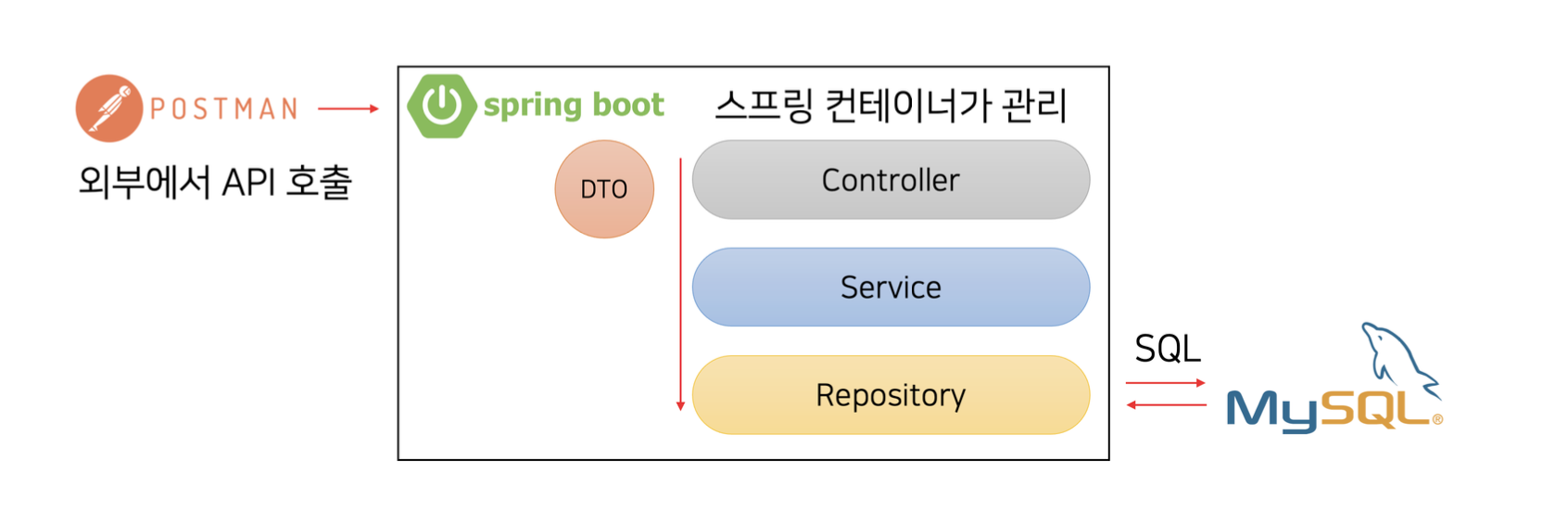 (1) Repository에서 데이터베이스와의 통신을 위해 직접적으로 쿼리를 사용했다. 하지만 SQL을 직접적으로 사용하면서 아래와 같은 단점들이 존재했다.
