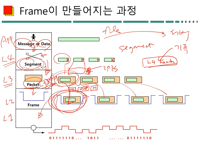 - L2 : Frame, L3 : Packet, L4 : Segment, 각 계층마다 PDU가 정확하게 정의되어 있다.