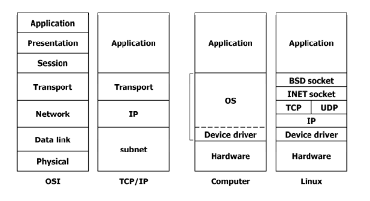 - 네트워크 측면(TCP/IP)에서는 크게 Network Access Layer(L1, L2), Network Layer(IP), Transport Layer, Application Layer 4계층으로 구분한다.