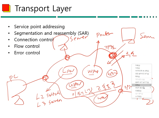 (2) 데이터 링크 계층에서는 하나의 링크에 대해 신뢰성 있는(Reliable)한 데이터 전달 기능을 보장하는 계층이라면 전송 계층은 End-to-End(Host-to-Host or Source to Destination)로 신뢰성 있는 데이터 전달 기능을 보장한다.