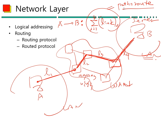 (2) 네트워크 계층에서는 데이터 링크 계층과는 다르게 통신을 위한 디바이스 간 전체 링크의 조합을 고려해야 하는 계층이다.