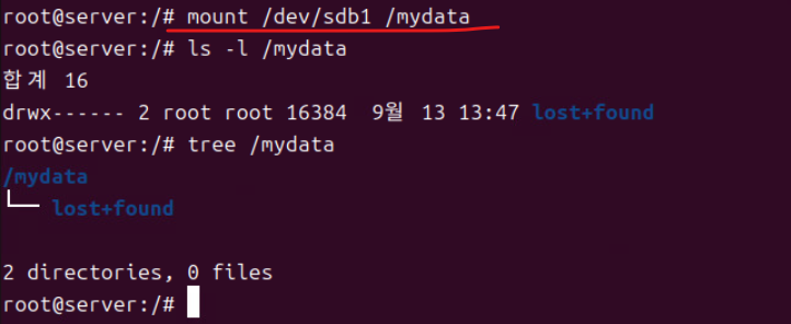 (7) 마운트 커맨드는 shutdown하게 되면 마운트가 해제되므로 다른 경로에 저장해 둬야 영구적으로 마운트 데이터들이 저장된다.