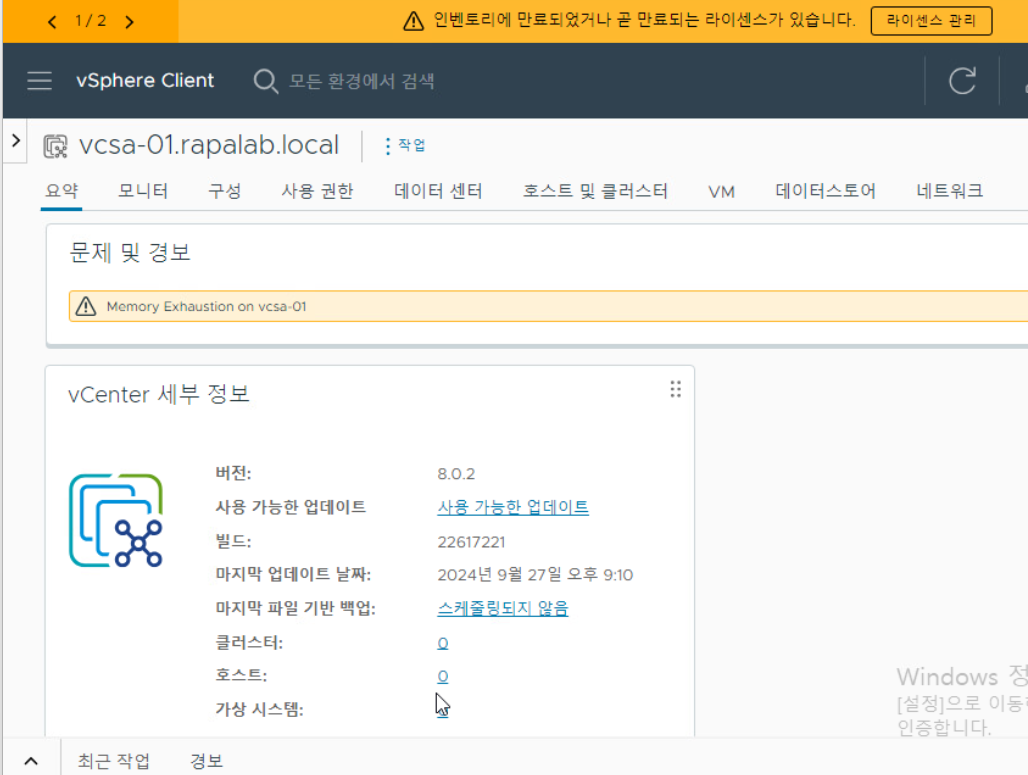 1-4. vCenter Server 접속 후 작업 - esxi-02, 03 호스트 등록