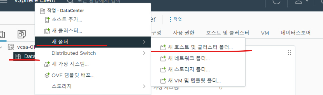 (8) 호스트를 추가하기 전, 호스트 메뉴에서 "새 호스트 및 클러스터 폴더"를 누르고 새로운 폴더를 생성한다.