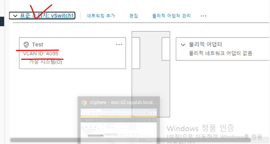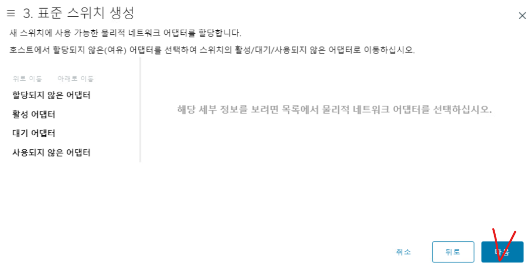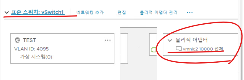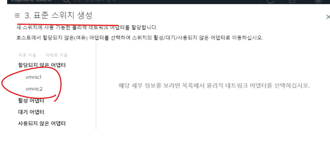(6) 새로운 스위치에 대해 할당되지 않은 VMNIC가 확인된다.