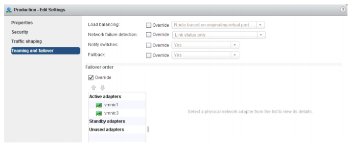 (7) VMNIC1 인터페이스를 통신에 사용하기 위해 활성 어댑터로 이동한다.