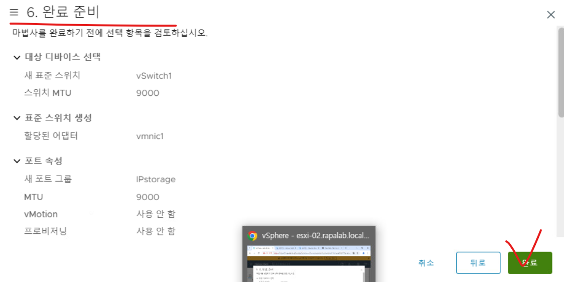 (24) 이후 새로운 vSwitch1을 생성하는데 VMKernel 네트워크로 위와 동일하게 잡고, esxi-03의 IP Storage VMKernel 주소 대역을 설정한다.