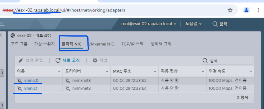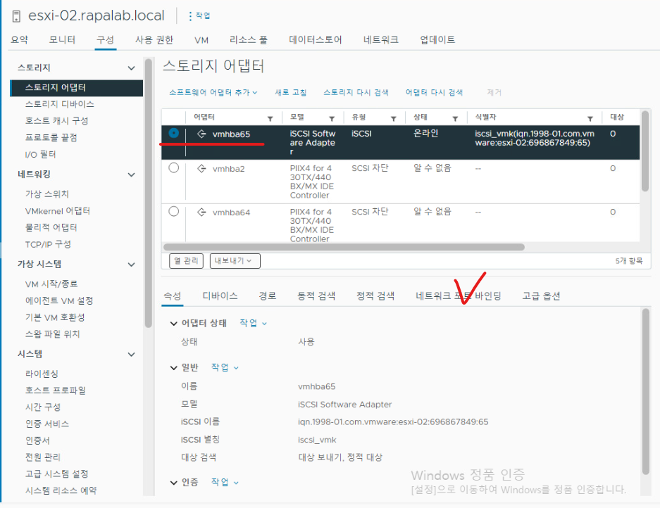 (6) 바인딩이 완료되면 VMKernel 포트가 인식된다. (ESXi-02 Host 기준)