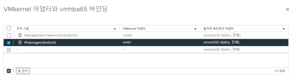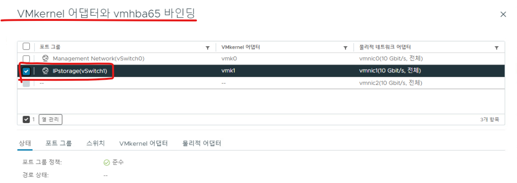 (5) VMKernel에서 설정한 통신 포트를 iSCSI 어댑터 드라이브와 바인딩한다.
