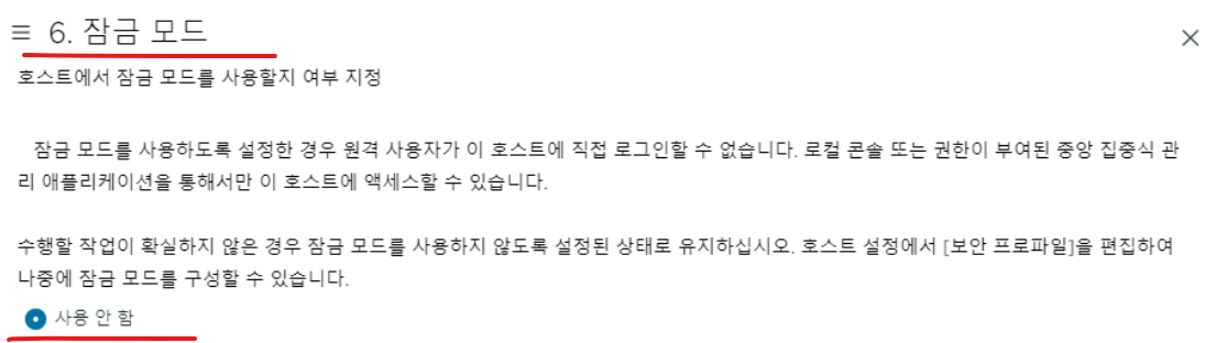 (20) 원격 접속 사용을 위해 잠금 모드는 Disabled 한다.