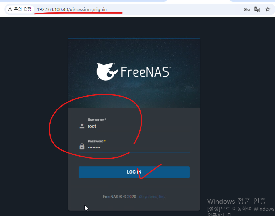 (2) 웹 브라우저에서 IP Storage의 주소로 접속한다.