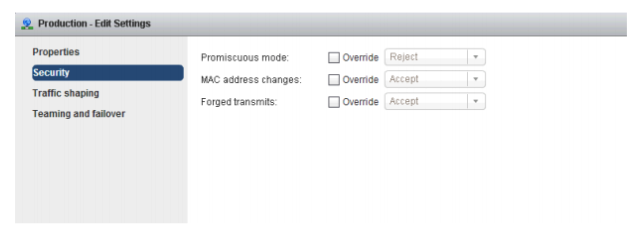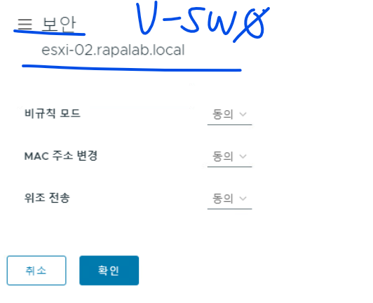 (13) esxi-02 호스트 v-Switch01의 보안 설정은 모두 허용 옵션으로 변경한다.