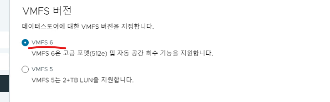 (15) VMFS 최신 버전을 선택한다.