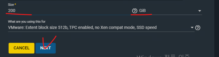 (12) 1번 볼륨의 경우 200GB 용량을 줄 것이므로 NEXT를 누른다.