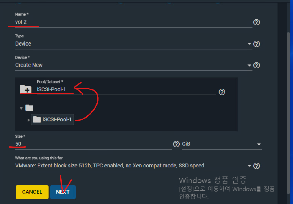 (11) iSCSI-Pool-1 디렉터리를 선택한다.