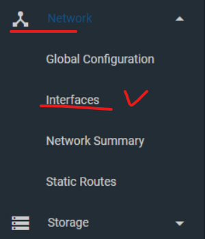 (5) 좌측의 네트워크 메뉴에서 인터페이스로 접속한다.