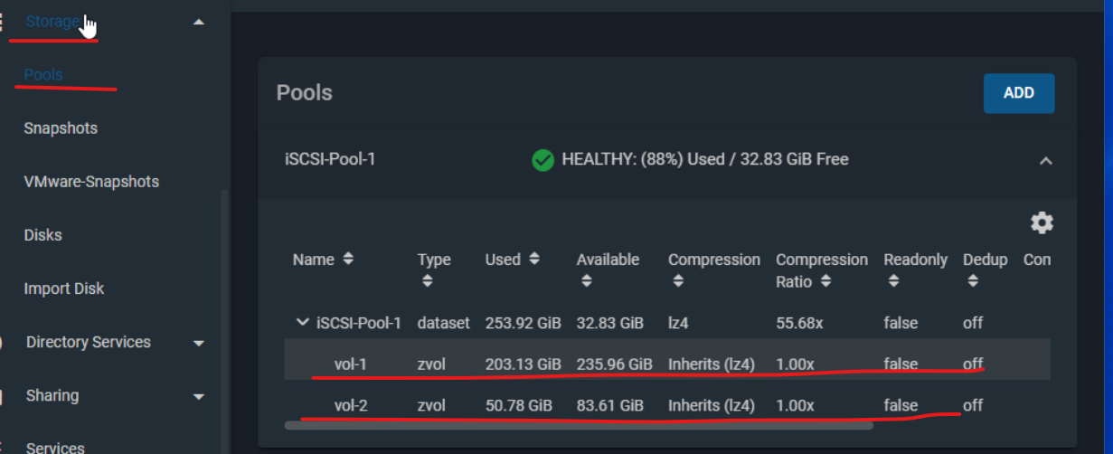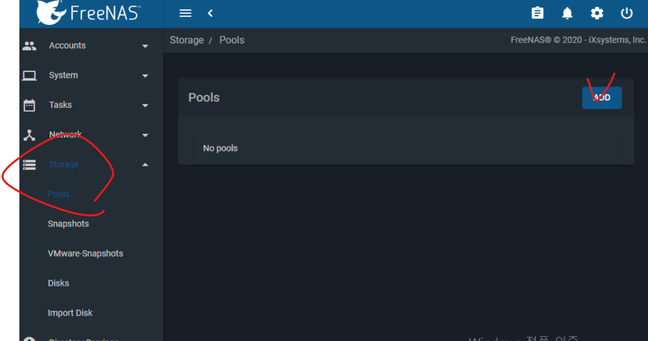 - 만약 디바이스가 확인되지 않는다면 FreeNAS에서 볼륨 생성 과정에서 문제가 발생한 것.