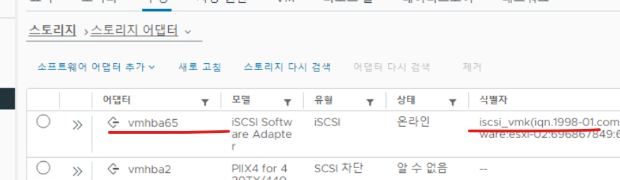 (27) 이후 ESXI-03 호스트를 기준으로도 스토리지 어댑터를 추가한다.