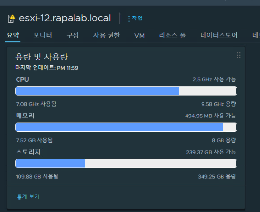 3-2. 부하를 준 후 ESXi-12 호스트의 자원 점유율 비교
