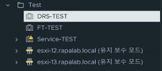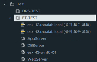 (8) 현재 위와 같은 메시지가 확인되어 esxi-12, 13 호스트가 아닌 esxi-02, 03 호스트를 FT-TEST 디렉터리로 옮긴 뒤 실습해 볼 계획이다.