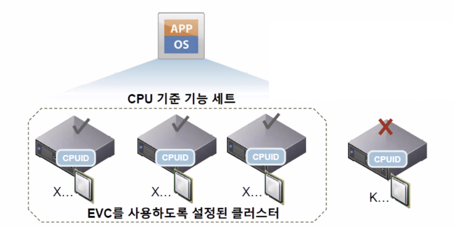 (1) EVC 클러스터 수준에서 작동하는 기능이며 CPU 기준을 사용해서 클러스터에 포함된 모든 프로세서에 대해 EVCf를 사용할 수 있도록 구성할 수 있다.