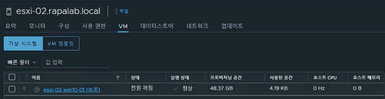 (9) esxi-02-win10 VM을 기준으로 FT 설정을 진행한다.