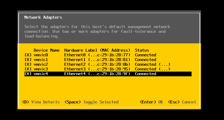 (4) 이후 DCUI에서 NIC 인터페이스를 활성화한다.