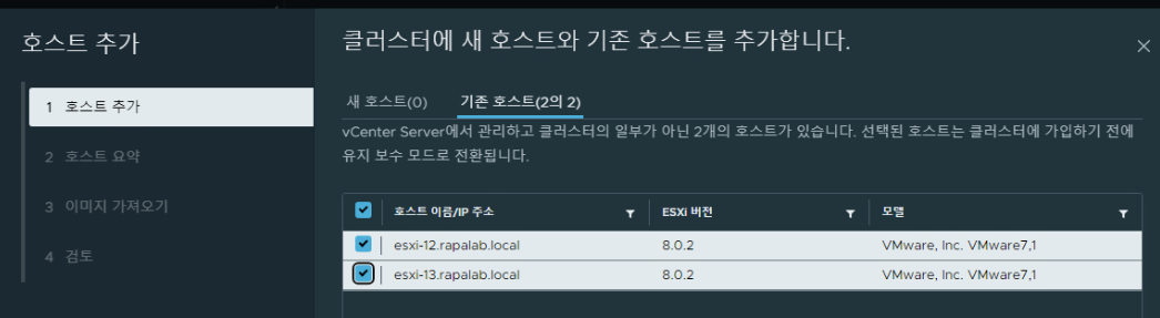 (4) 그림처럼 두 호스트를 선택하고 다음으로 넘어간다.