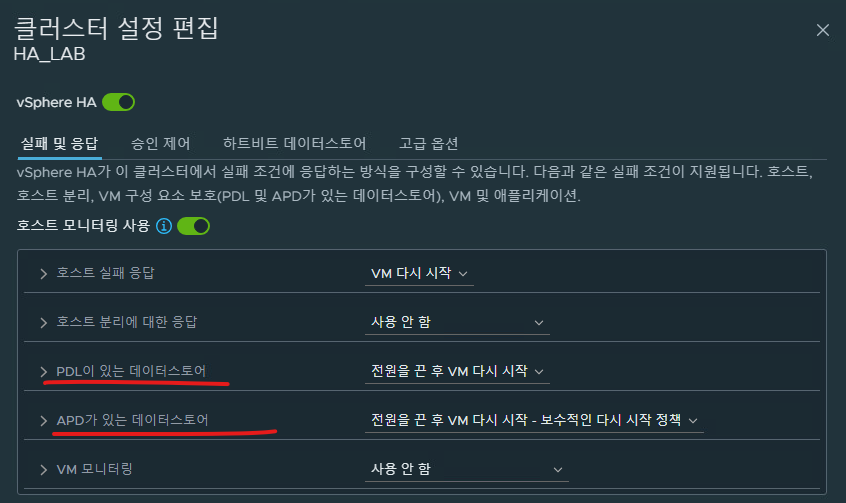 - vSphere 특정 버전 이상에서만 FT를 사용할 수 있고 호스트의 하드웨어에 대해 호환성 문제가 있을 수 있다.