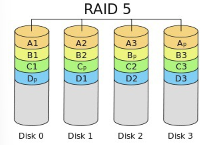(2) 최소 3개의 디스크로 구성 가능하며 패리티 디스크를 동일한 디스크에 저장하기 때문에 패리티 디스크를 저장하는 해당 디스크의 수명이 줄어든다는 특징이 있다.